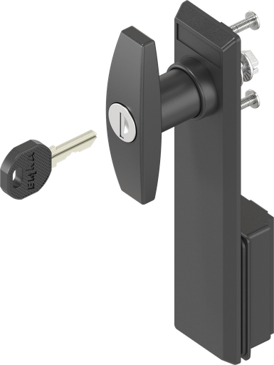 Escutcheon with T-handle, keyed different, Polyamide black and zinc die black powder-coated; 1123-U9-N6